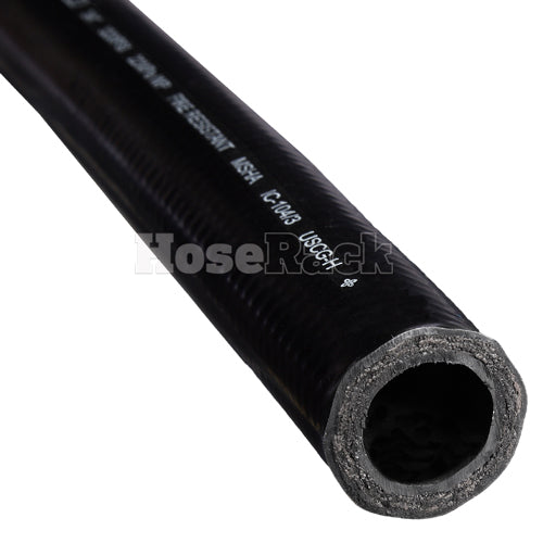 The hydraulic hose cover is smooth, black, high-abrasion, oil and weather resistant synthetic rubber, and MSHA approved.