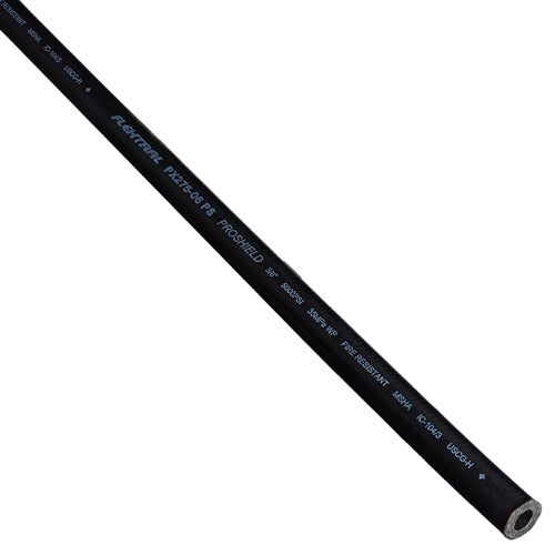 The hydraulic hose cover is smooth, black, high-abrasion, oil and weather resistant synthetic rubber, and MSHA approved.