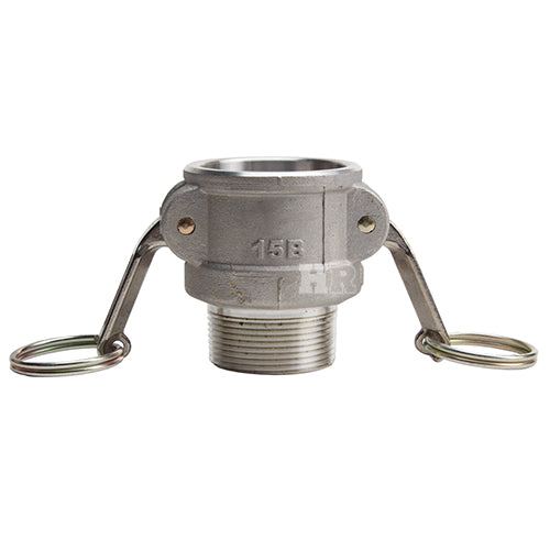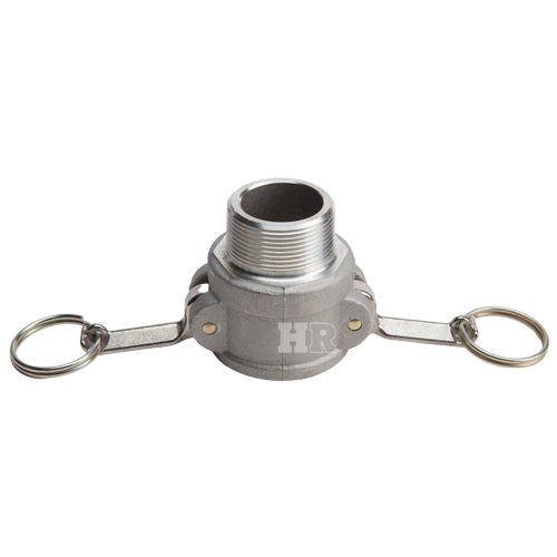 Global type "B" aluminum 1 1/2 inch female camlock (Cam & Groove) coupler to 1 1/2 inch male NPT threads.