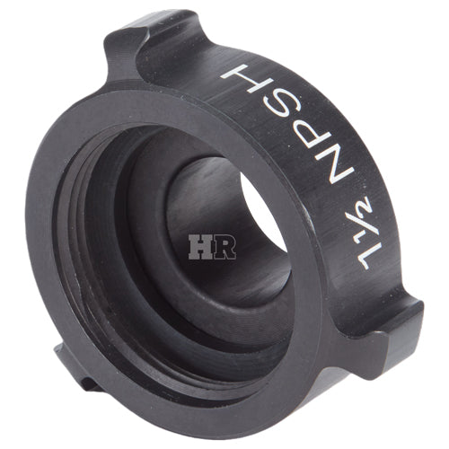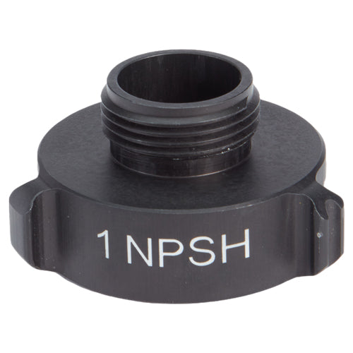 Aluminum adapters are fabricated from seamless extruded 6061-T6 aluminum and hard coat anodized per MIL-A-8625 Type III, Class 1. Threads have a blunt start Higbee cut with indicators on adjacent lugs. Part identifications are permanent and stamped prior to hardcoat. Adapters and components meet the requirements of NFPA 1963.