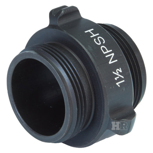 Aluminum adapters are fabricated from seamless extruded 6061-T6 aluminum and hard coat anodized per MIL-A-8625 Type III, Class 1. Threads have a blunt start Higbee cut with indicators on adjacent lugs. Part identifications are permanent and stamped prior to hardcoat. Adapters and components meet the requirements of NFPA 1963.