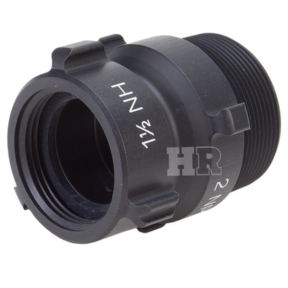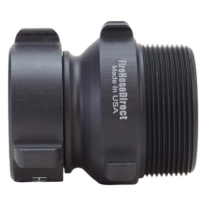 Aluminum adapters are fabricated from seamless extruded 6061-T6 aluminum and hard coat anodized per MIL-A-8625 Type III, Class 1. Threads have a blunt start Higbee cut with indicators on adjacent lugs. Part identifications are permanent and stamped prior to hardcoat. Adapters and components meet the requirements of NFPA 1963.