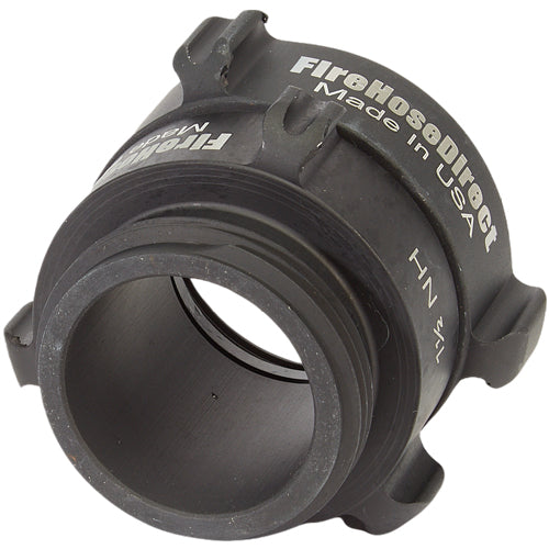 Aluminum adapters are fabricated from seamless extruded 6061-T6 aluminum and hard coat anodized per MIL-A-8625 Type III, Class 1. Threads have a blunt start Higbee cut with indicators on adjacent lugs. Part identifications are permanent and stamped prior to hardcoat. Adapters and components meet the requirements of NFPA 1963.