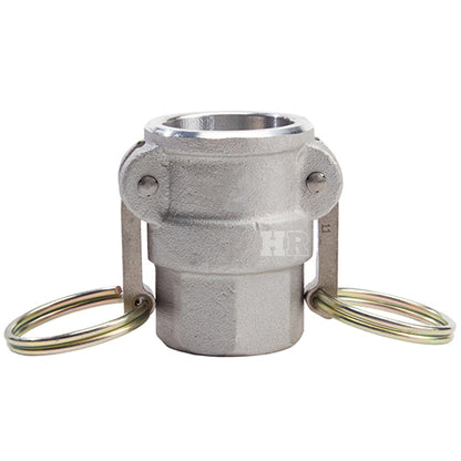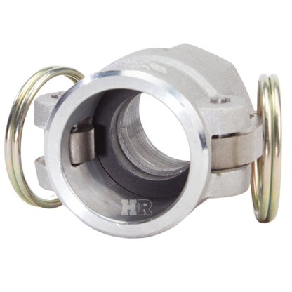 Global type "D" aluminum 1 inch camlock (Cam & Groove) female coupler to 1 inch NPT female threads.