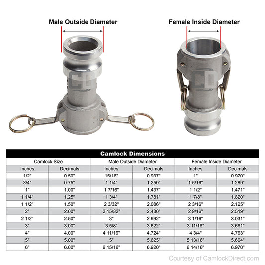 - The female side of this adapter will only connect to a 2 inch male camlock