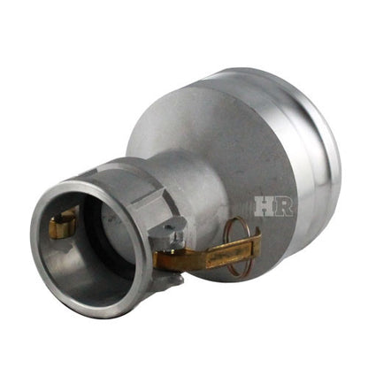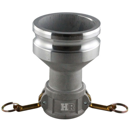 Aluminum 2 inch female camlock (Cam & Groove) coupler to 4 inch male camlock (Cam & Groove) coupler.
