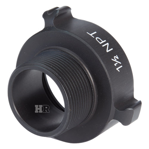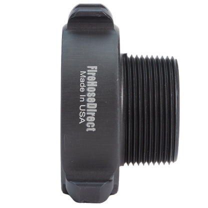 Aluminum adapters are fabricated from seamless extruded 6061-T6 aluminum and hard coat anodized per MIL-A-8625 Type III, Class 1. Threads have a blunt start Higbee cut with indicators on adjacent lugs. Part identifications are permanent and stamped prior to hardcoat. Adapters and components meet the requirements of NFPA 1963.