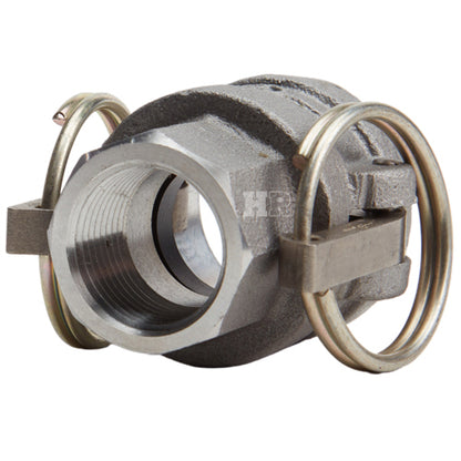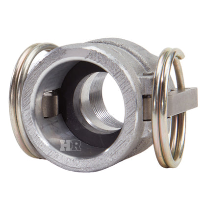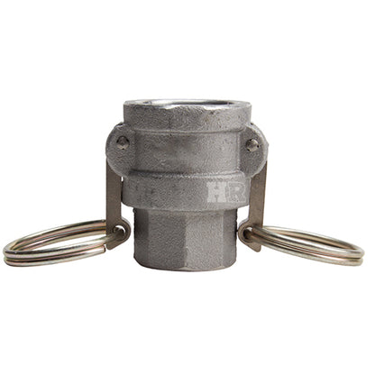 Type "D" aluminum 3/4 inch female camlock (Cam & Groove) coupler to 3/4 inch female NPT threads.