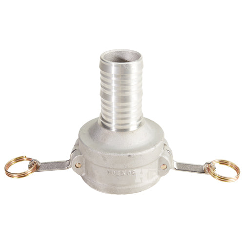 Global Jump Size type "C" aluminum 3 inch female camlock (Cam & Groove) coupler to 2 inch hose shank.