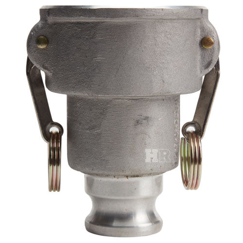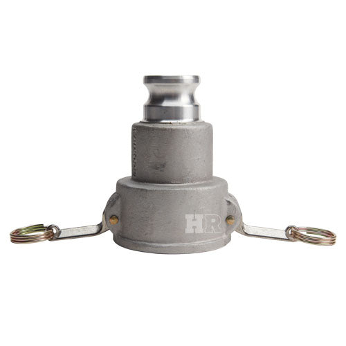 Aluminum 3 inch female camlock (Cam & Groove) coupler to 1 1/2 inch male camlock (Cam & Groove) coupler.