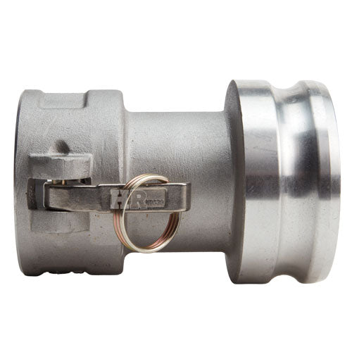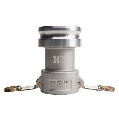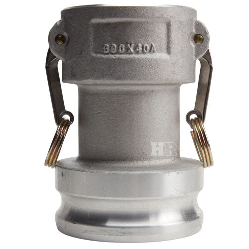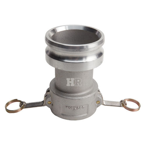 Aluminum 3 inch female camlock (Cam & Groove) coupler to 4 inch male camlock (Cam & Groove) coupler.