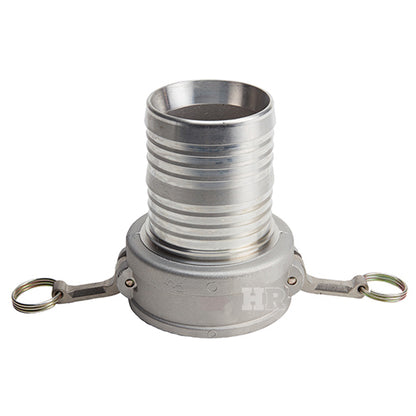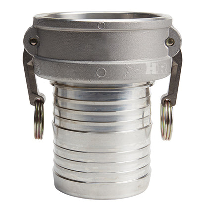 Global Jump Size type "C" aluminum 4 inch female camlock (Cam & Groove) coupler to 3 inch hose shank.