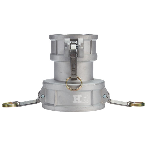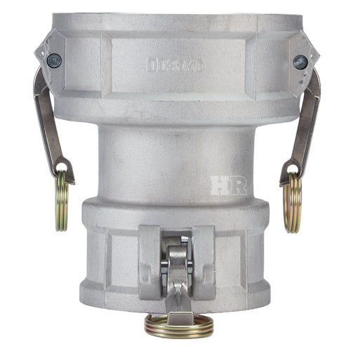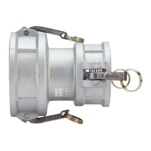 Global type "D" aluminum 4 inch female camlock (Cam & Groove) coupler to 3 inch female camlock (Cam & Groove).