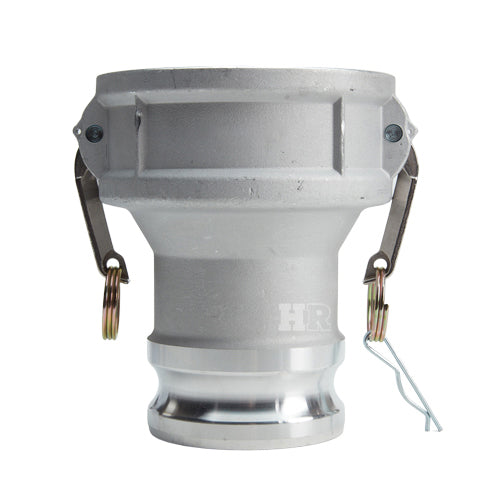 Aluminum 5 inch female camlock (Cam & Groove) coupler to 4 inch male camlock (Cam & Groove) coupler.