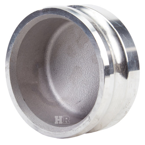Global type "DP" aluminum 5 inch male camlock (Cam & Groove) dust plug. Dust caps and dust plugs are not to be used in pressure applications for safety and environmental reasons.