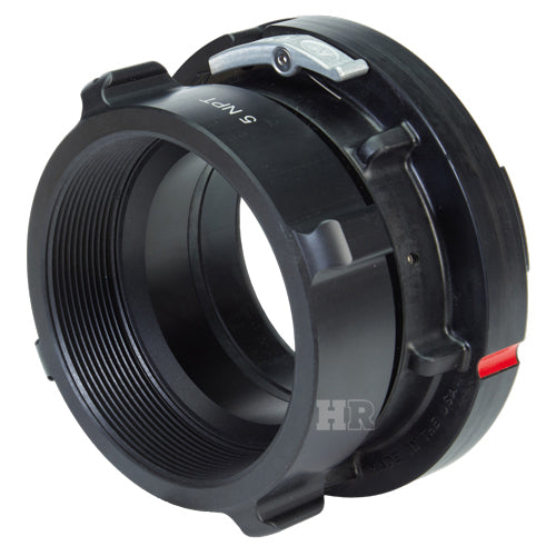 Storz Head component shall be forged from Alloy 6061 aluminum and heat treated to T6 temper. Adapters and components meet the requirements of NFPA 1963. Locking Storz are only available on 4, 5, and 6 inch. Locking springs prevent unintentional disconnects. Locks are stainless steel.