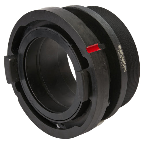 Storz Head component shall be forged from Alloy 6061 aluminum and heat treated to T6 temper. Adapters and components meet the requirements of NFPA 1963. Locking Storz are only available on 4, 5, and 6 inch. Locking springs prevent unintentional disconnects. Locks are stainless steel.