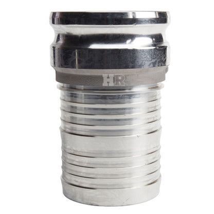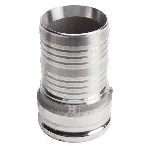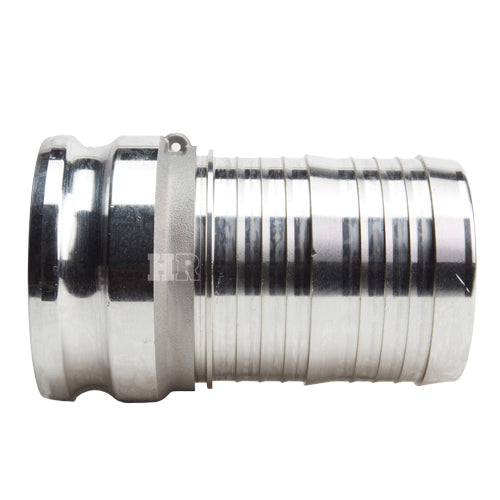 Global type "E" aluminum 6 inch male camlock (Cam & Groove) coupler to 6 inch hose shank.