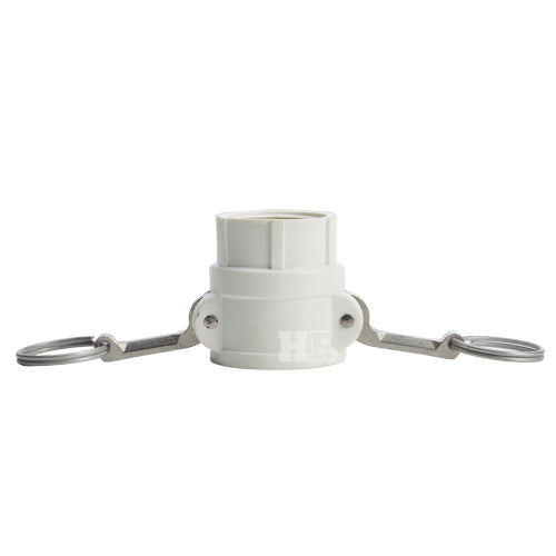 Type "D" polypropylene 1 1/2 inch female camlock (Cam & Groove) coupler to 1 1/2 inch female NPT threads.