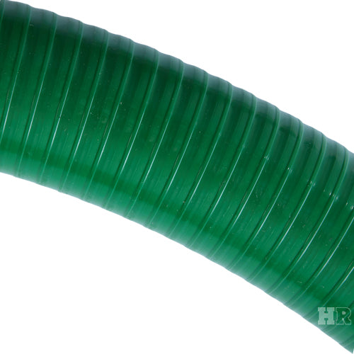 Green lightweight pvc water suction hose is rated for medium duty. Reinforced with high tensile synthetic yarn and steel helix wire.