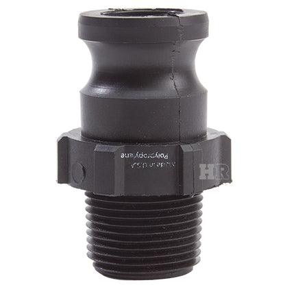 Type "F" polypropylene 1 inch male camlock (Cam & Groove) coupler to 1 inch male BSP threads.
