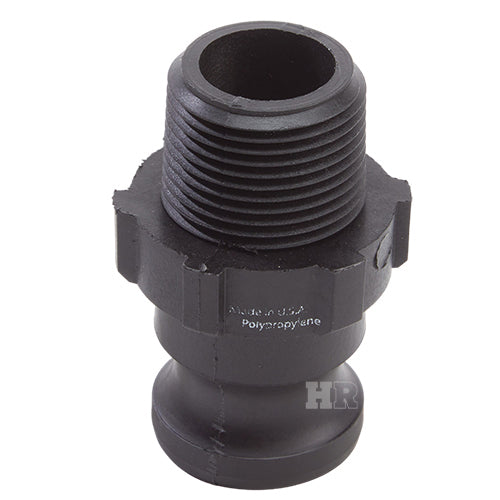 Type "F" polypropylene 1 inch male camlock (Cam & Groove) coupler to 1 inch male NPT threads.