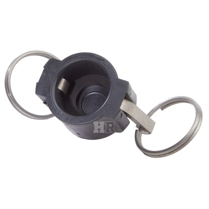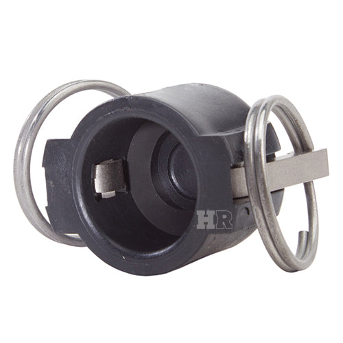 Type "DC" polypropylene 3/4 inch female camlock (Cam & Groove) dust cap. Dust caps and dust plugs are not to be used in pressure applications for safety and environmental reasons.Under no circumstances should cam and groove couplings be used for compressed air or steam service!