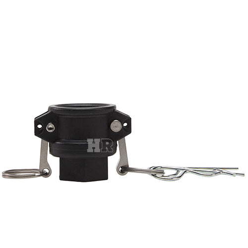 Type "D" polypropylene 3/4 inch female camlock (Cam & Groove) coupler to 3/4 inch female NPT threads.