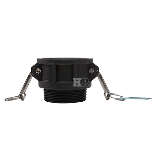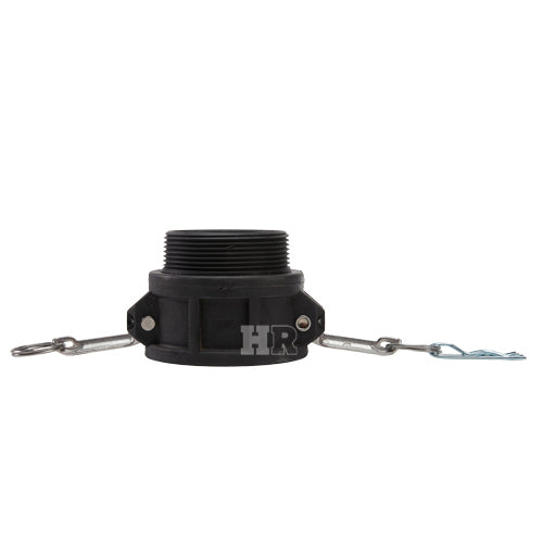 Type "B" polypropylene 3 inch female camlock (Cam & Groove) coupler to 3 inch male NPT threads.