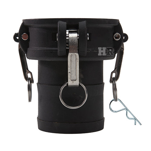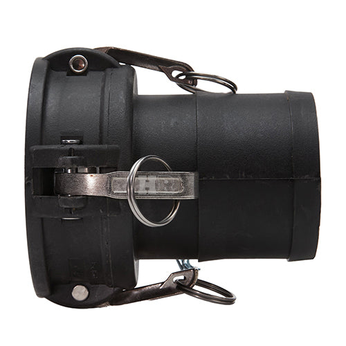 Type "C" polypropylene 4 inch female camlock (Cam & Groove) coupler to 4 inch hose shank.