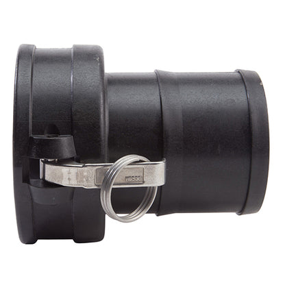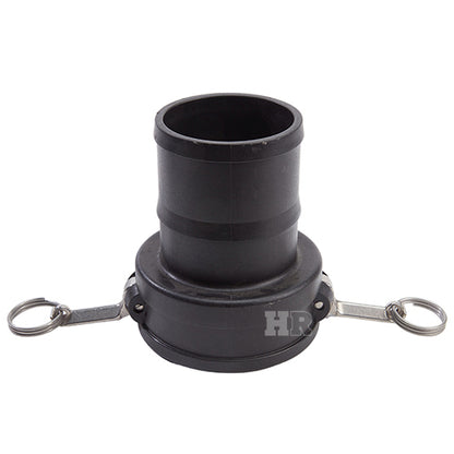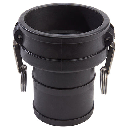 Type "C" polypropylene 4 inch female camlock (Cam & Groove) coupler to 4 inch hose shank.