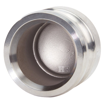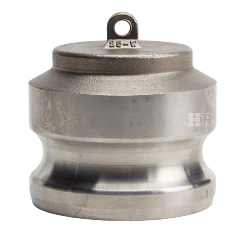 Type "DP" stainless steel 2 1/2 inch male camlock (Cam & Groove) dust plug. The stainless steel male camlock plug is used to seal intake and outlet openings on water pumps and hoses when they are not being used. The plug is used to seal any kind of leak and it prevents debris and other material from entering a pump.