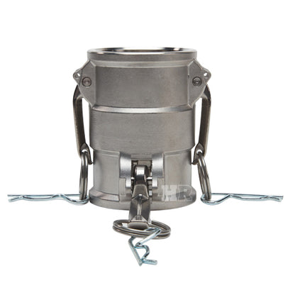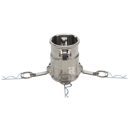 Type "DD" spool stainless steel 3 inch female camlock (Cam & Groove) coupler to 3 inch female camlock (Cam & Groove).