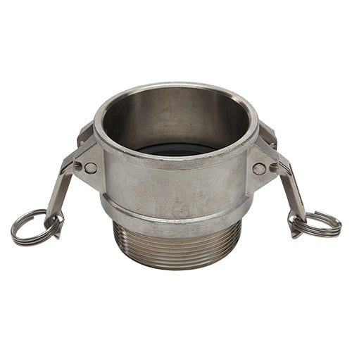 Type "A" stainless steel 3 inch male camlock (Cam & Groove) coupler to 2 inch female NPT threads. In reducing couplings, the cam and groove end is the first size in the part number.