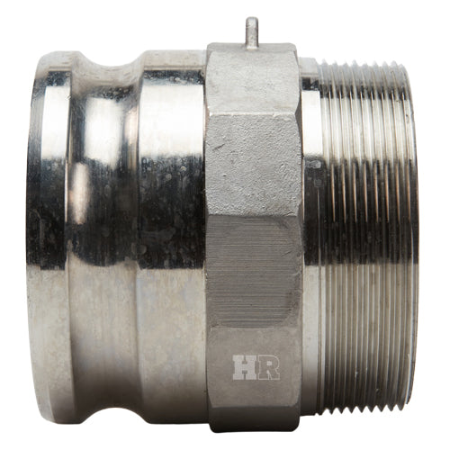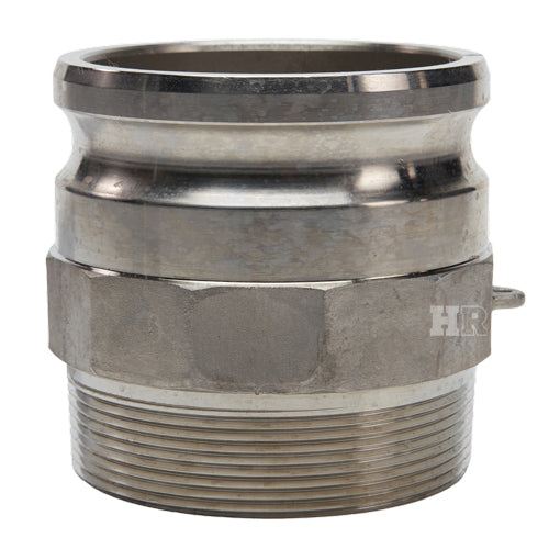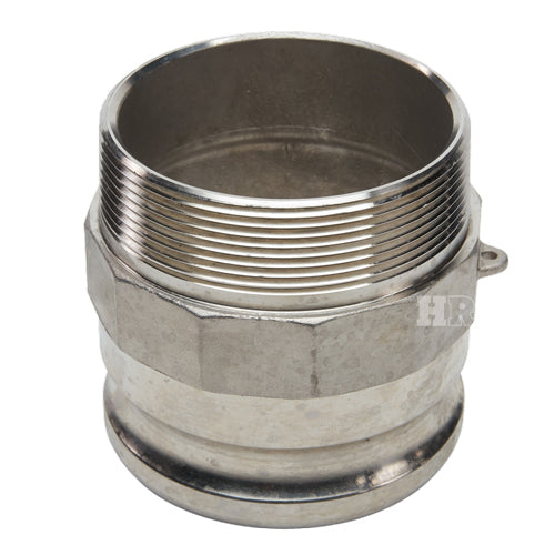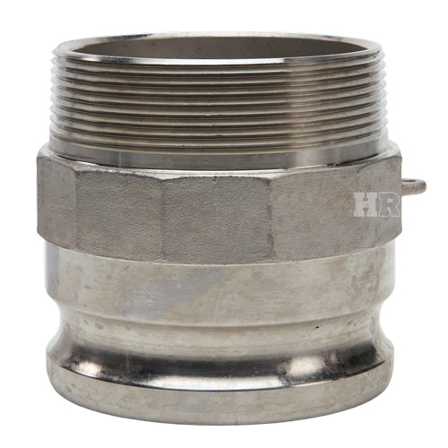 Type "F" stainless steel 4 inch male camlock (Cam & Groove) coupler to 4 inch male NPT threads. Designed to interchange with all products produced to MIL-C-27487F. Pressure rating for adapters, is based on the seal of the mating part.