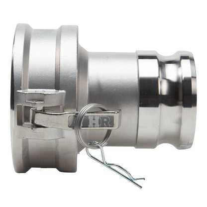 - The female side of this adapter will only connect to a 4 inch male camlock