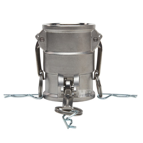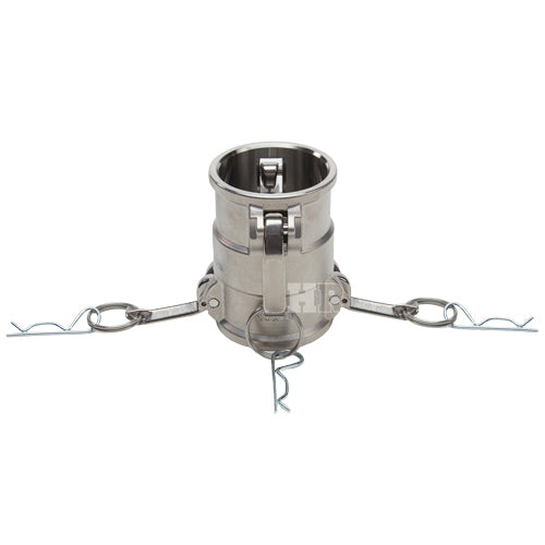 Type "DD" spool stainless steel 4 inch female camlock (Cam & Groove) coupler to 4 inch female camlock (Cam & Groove).