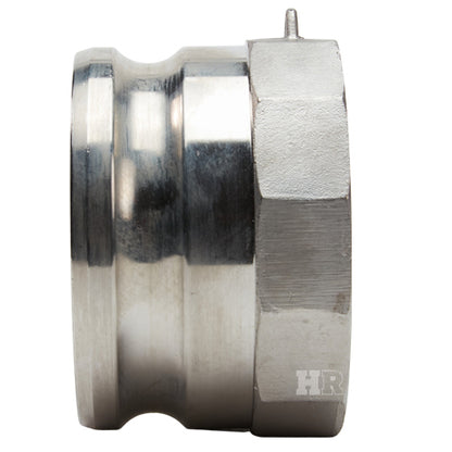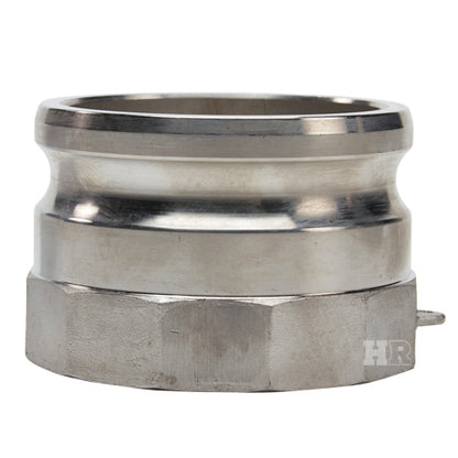 Type "A" stainless steel 4 inch male camlock (Cam & Groove) coupler to 3 inch female NPT threads. In reducing couplings, the cam and groove end is the first size in the part number.