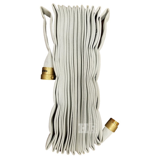 Brass couplings are standard (aluminum available). Brass and aluminum female couplings have two rocker lugs. Hose comes pre-folded and is for emergency fire fighting only.